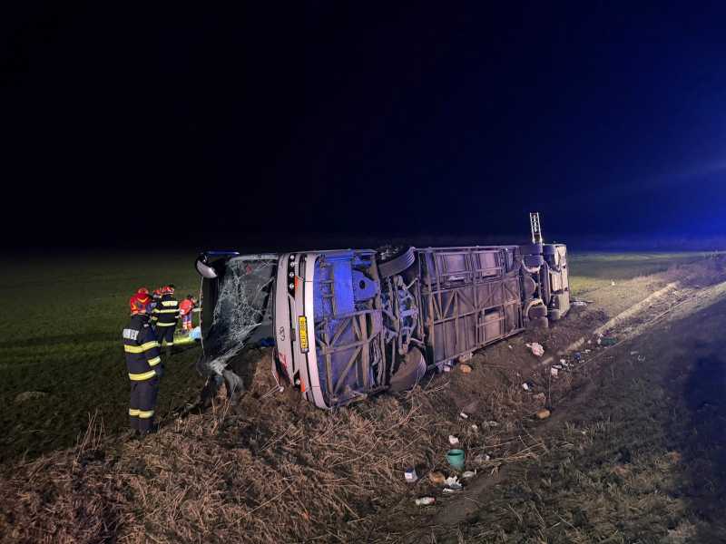 Un bărbat a decedat și 14 persoane au fost transportate la spital după ce un autocar s-a răsturnat, sâmbătă dimineață, pe drumul E581, între localitățile Priponești și Tutova, la limita județului Galați cu județul Vaslui. Potrivit ISU Vaslui, în autocar se aflau 44 de persoane - 42 de călători și doi conducători auto. Av&acir