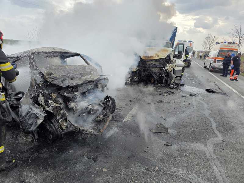 Buzău: Două persoane decedate în urma unui accident pe DN2; o mașină a luat foc