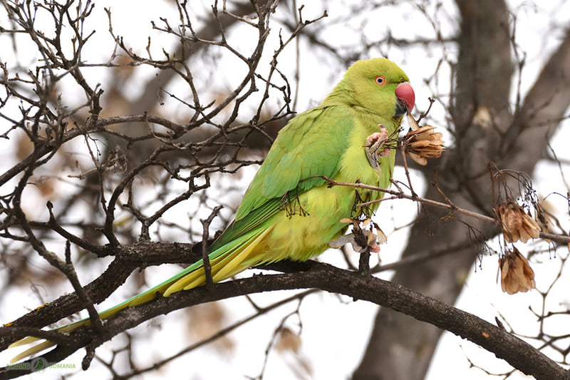 Buzău: Papagal observat lângă o hrănitoare din Parcul Crâng; e prima semnalare a unui exemplar în județ
