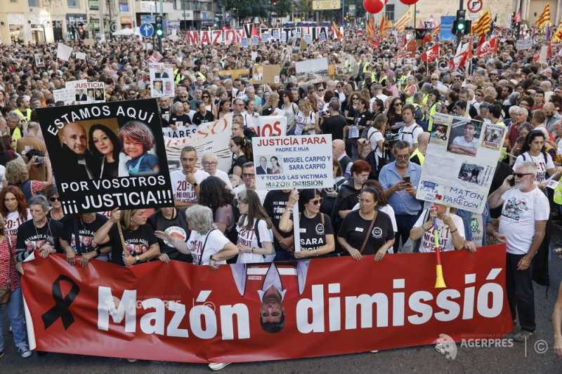 Peste 50.000 de manifestanți s-au adunat sâmbătă seara la Valencia, în estul Spaniei, pentru a aduce un omagiu victimelor inundațiilor catastrofale din octombrie 2024 și pentru a protesta față de modul în care autoritățile au gestionat d