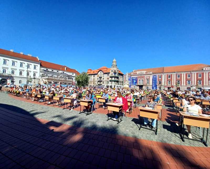 REPORTAJ Marea Dictare Urbană a atras peste 500 de iubitori ai caligrafiei în Piața Libertății din Timișoara
