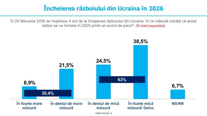 Doar 3 din 10 români cred că războiul din Ucraina se va încheia în 2026 printr-un acord de pace, conform sondajului ''4 ani de război în Ucraina. Impactul profund asupra opiniei publice din România'' realizat de INSCOP Research pentru New St