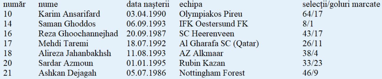 Echipa-tip: Beiranvand - Mohammadi, M. Hosseini, Pouraliganji, Rezaeian - Karimi, Ezatolahi, Haji Safi - Taremi, Azmoun, Jahanbakhsh.