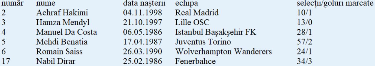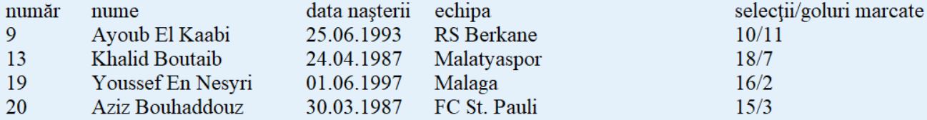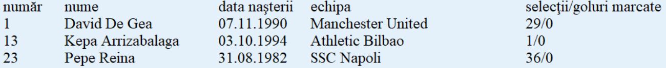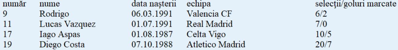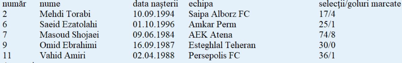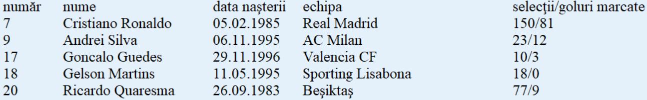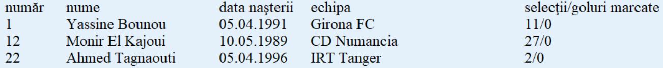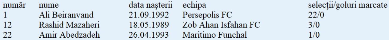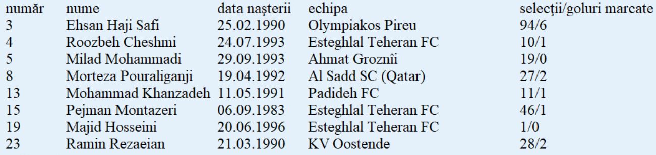 Lotul de jucători: