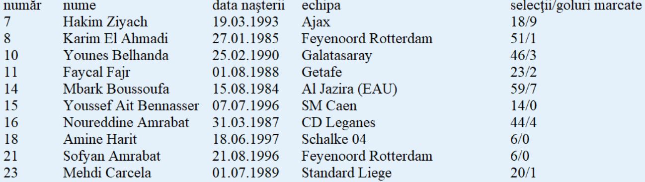 Echipa-tip: El Kajoui - Benatia, Dirar, Saiss, Mendyl - El Ahmadi, Boussoufa, N. Amrabat - Ziyech, Belhanda, Boutaib