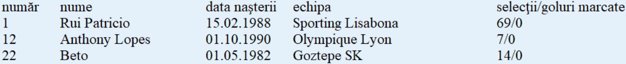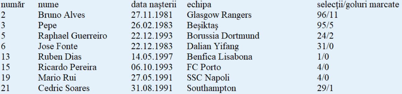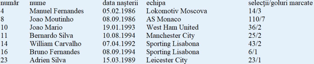 Echipa-tip: Rui Patricio - Cedric, Pepe, Fonte, Guerreiro - Bernardo Silva, William Carvalho, Moutinho, Joao Mario - André Silva, Ronaldo