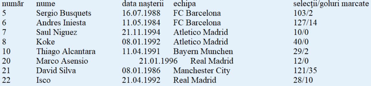 Echipa-tip: De Gea - Dani Carvajal, Pique, Ramos, Jordi Alba - Koke (Thiago Alcantara), Busquets, Iniesta - David Silva, Diego Costa, Isco