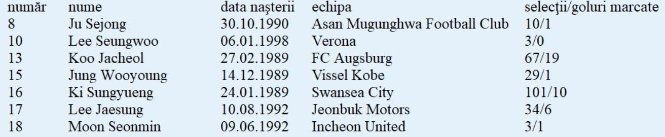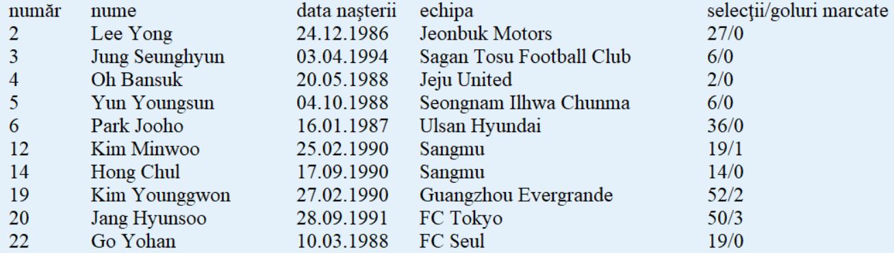 Echipa-tip: Kim Seunggyu - Jung Seunghyun, Kim Younggwon, Jang Hyunsoo, Lee Yong - Ki Sungyueng, Jung Wooyoung - Son Heungmin, Koo Jacheol, Lee Jaesung - Hwang Heechan.