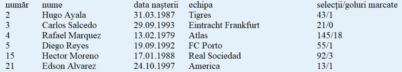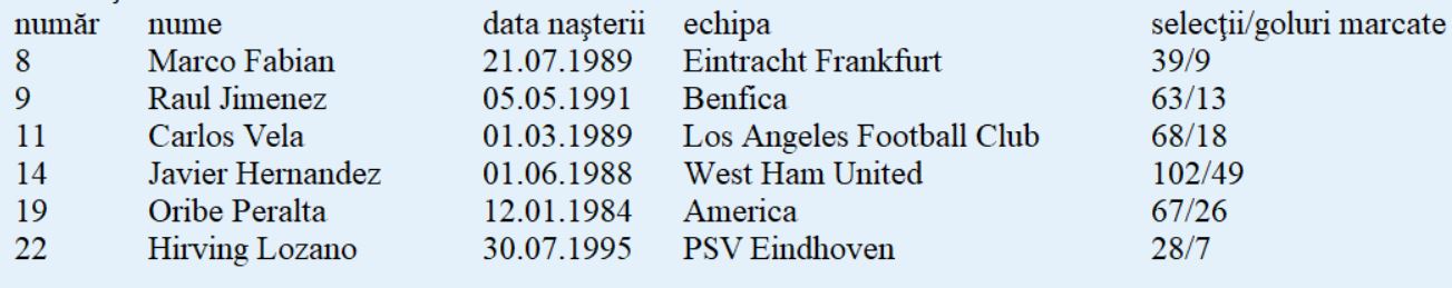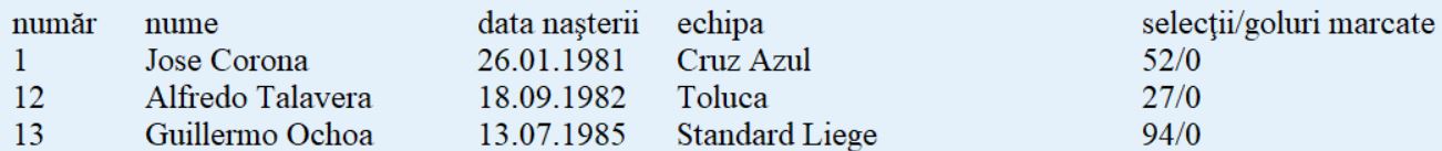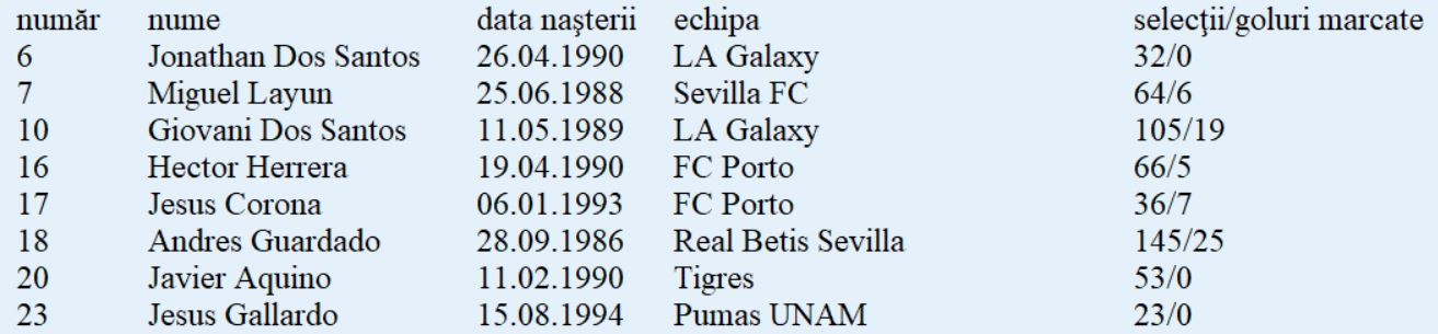 Echipa-tip: Ochoa - Salcedo, Reyes, Moreno, Layun - Molina, Herrera, Guardado - Vela, Hernandez, Lozano.