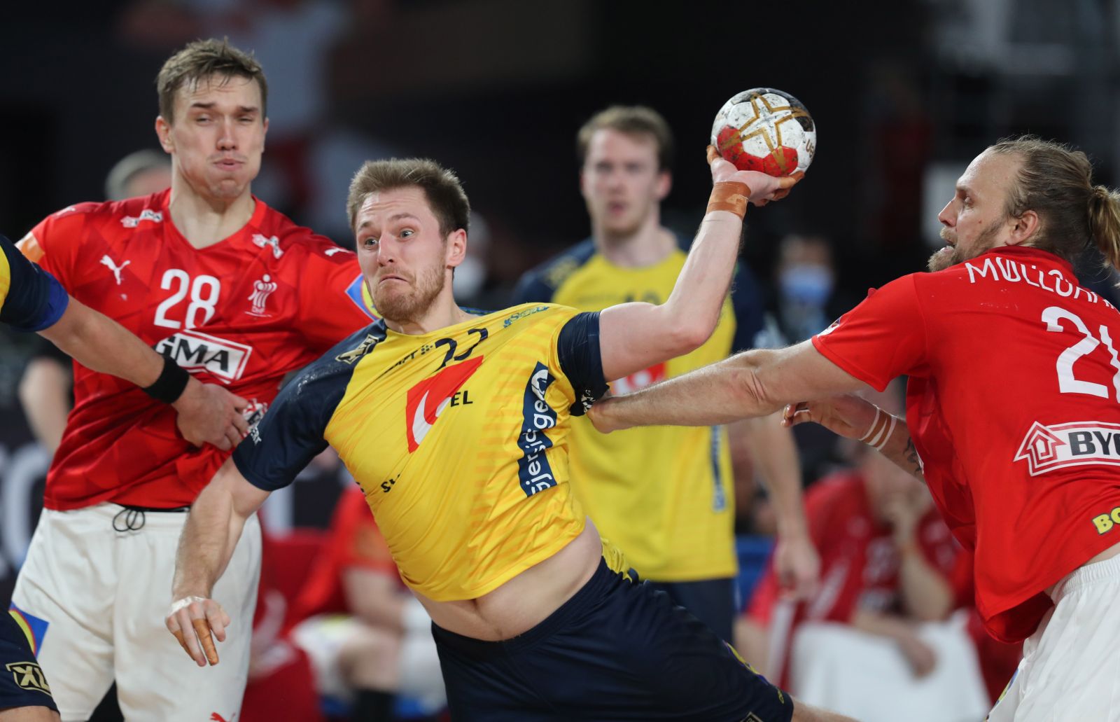 Danezii, conduşi de Mikkel Hansen, autor a 7 goluri, şi de portarul Niklas Landin şi-au apărat titlul cucerit pe teren propriu în 2019, când au învins o altă rivală scandinavă, Norvegia, cu 31-22.