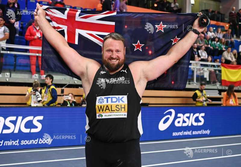 Atletul neozeelandez Tom Walsh a devenit campion mondial în sală la aruncarea greutății pentru a patra oară în carieră, duminică, în ultima zi a Mondialelor de la Torun (Polonia), informează AFP. Walsh s-a impus cu o aruncare de 21,82 m la a șasea încercare, obținând la 34 de ani al patrulea titlu mondial indoor,