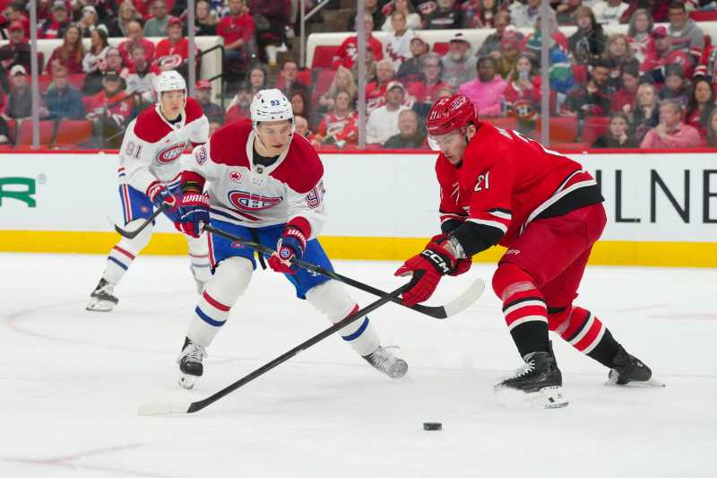 Echipa Montreal Canadiens s-a impus în deplasare, cu scorul de 3-1, în fața formației Carolina Hurricanes, într-un meci disputat duminică seara, obținând al cincilea succes consecutiv în Liga profesionistă nord-americană de hochei pe gheață (NHL). Căpitanul francizei canadiene, Nick Suzuki, a marcat două goluri și