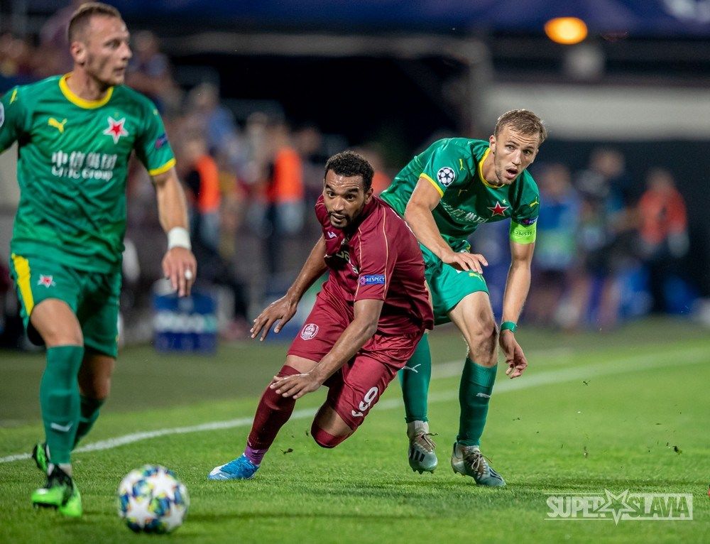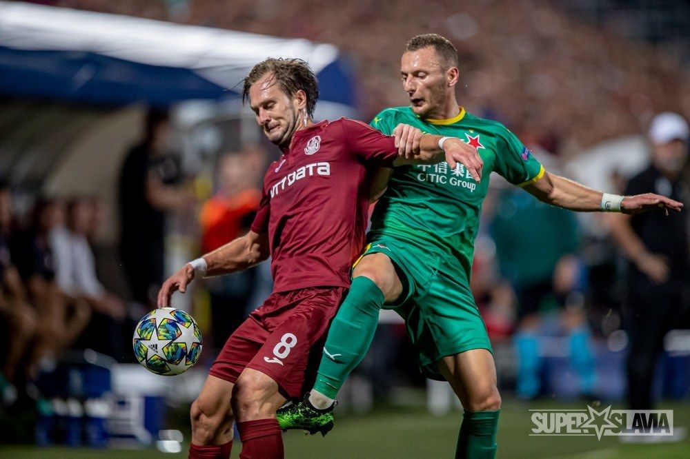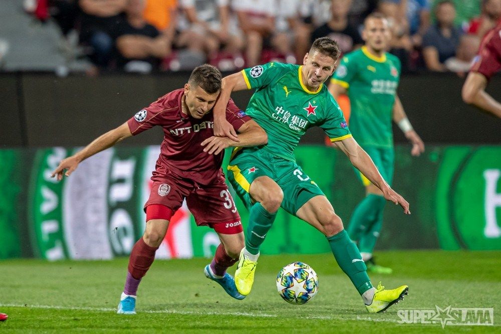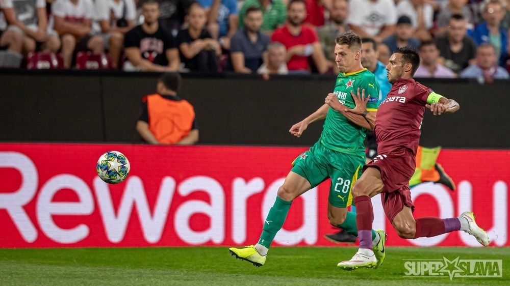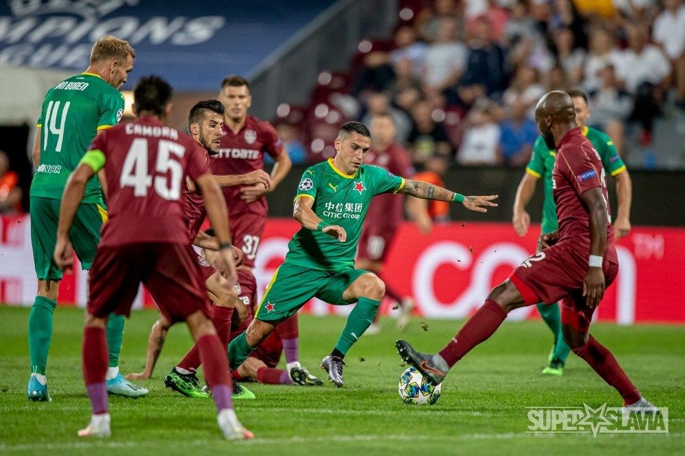 Slavia, cu internaţionalul român Nicolae Stanciu integralist şi cu Alexandru Băluţă pe banca de rezerve, a câştigat prin golul marcat de Lukas Masopust (28). CFR putea obţine mai mult, dar a avut o bară şi a ratat un penalty prin Billel Omrani (79).