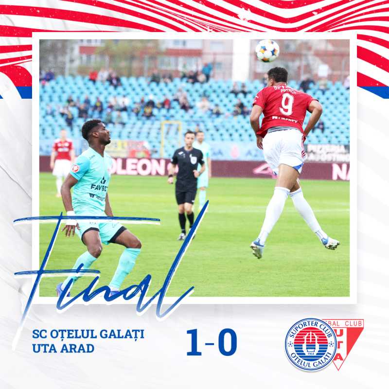 Oțelul Galați a învins-o pe UTA Arad cu scorul de 1-0 (1-0), vineri seara, pe teren propriu, într-un meci din etapa a cincea a fazei play-out a Superligii de fotbal. Unicul gol al partidei a fost înscris de Andrei Ciobanu (19 - penalty). Arădenii au avut doi jucători eliminați în acest meci. Ucraineanul D