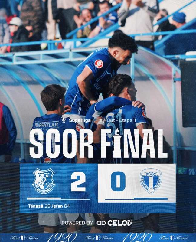 Farul Constanța a învins-o pe Petrolul Ploiești cu scorul de 2-0 (1-0), duminică, pe teren propriu, la Ovidiu, într-un meci din prima etapă a fazei play-out a Superligii de fotbal. Răzvan Tănase (29) și Alexandru Ișfan (64) au marcat golurile echipei Farul. Farul venea după trei eșecuri consecutive. Fa