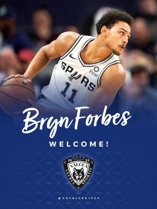 Echipa de baschet masculin CS Vâlcea 1924 a anunțat, luni, pe pagina sa de Facebook că l-a transferat pe jucătorul american Bryn Forbes, fost campion în NBA, care a venit de la Aris Salonic. ''S