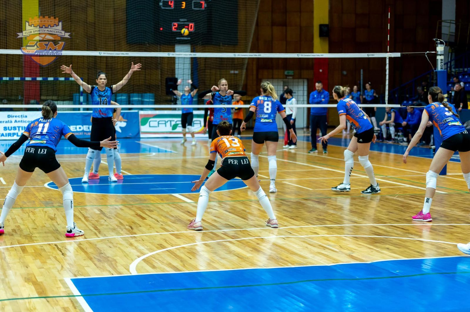 În finală, CSM Târgovişte o va înfrunta pe campioana en titre, CSM Volei Alba Blaj, care a trecut cu 2-0 la general de CS Rapid Bucureşti, în cealaltă semifinală.