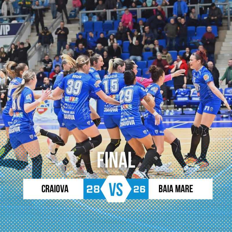 SCM Universitatea Craiova a învins-o pe CS Minaur Baia Mare cu 28-26 (13-11), sâmbătă, în Sala Polivalentă din Bănie, într-un meci restant din etapa a 13-a a Ligii Naționale de handbal feminin. Gazdele au condus în repriza secundă și la opt goluri (25-17). Camila Micijevic și Camila Micijevic au mar