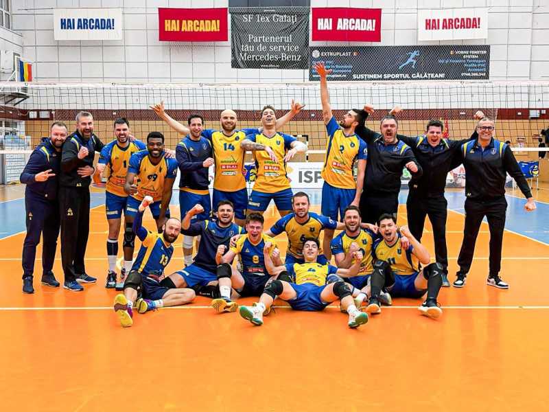 În alt meci interesant, CSM Corona Brașov a învins-o dramatic pe CS Arcada Galați cu scorul de 3-2 (22-25, 22-25, 31-29, 27-25, 20-18), chiar în Sala Polivalentă Dunărea, revenind de la 0-2 la seturi.