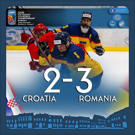 Selecționata României a învins Croația cu scorul de 3-2 (0-0, 1-1, 2-1), sâmbătă seara, în ultimul său meci de la Campionatul Mondial de hochei pe gheață Under-18, Divizia a II-a, Grupa A, pe Patinoarul ''Deme Laszlo'' din Târgu Secuiesc. Matei Freciu (31:58), Attila Gall (55:08) și Laszlo Kovacs (
