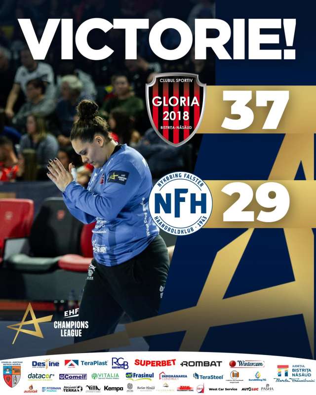 CS Gloria 2018 Bistriţa-Năsăud a obţinut a doua sa victorie în Liga Campionilor la handbal feminin, 37-29 (16-14) cu echipa daneză Nykobing Falster Handbold, sâmbătă, pe teren propriu, într-un meci din Grupa A. Gloria a controlat jocul de la un capăt la altul, o singură dată înregistrându-se egalitatea, 2-2, iar &