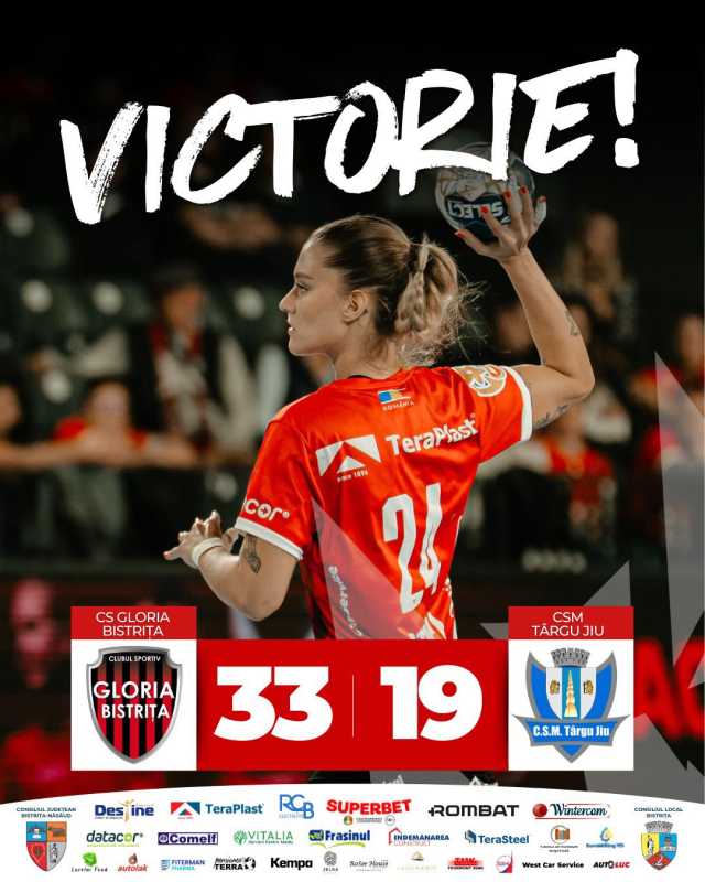 CS Gloria Bistrița a învins-o pe CSM Târgu Jiu cu scorul de 33-19, miercuri seara, în TeraPlast Arena, într-un meci din etapa a 13-a a Ligii Naționale de handbal feminin. Gloria a condus de la u capăt la altul al meciului, câștigând la o diferență confortabilă, de 14 goluri, urcând provizoriu pe primul