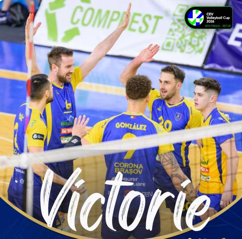 CSM Corona Brașov s-a calificat în optimile de finală ale Cupei CEV la volei masculin, după ce a învins echipa elvețiană Volley Schoenenwerd, cu scorul de 3-0 (25-20, 25-19, 25-21) și cu 15-12 în ''setul de aur'', miercuri, în Sala Sporturilor ''Dumitru Popescu-Colibași'', în manșa secundă a șaisprezecimil