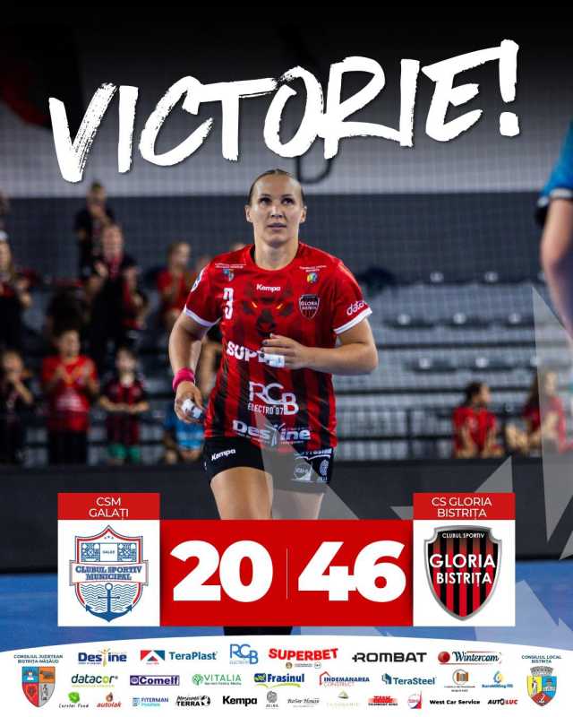 CS Gloria Bistrița a surclasat-o pe CSM Galați cu scorul de 46-20 (24-10), marți, în TeraPlast Arena, într-un meci din etapa a 11-a a Ligii Naționale de handbal feminin. Iaroslava Burlacenko, Cristina Laslo, Lorena-Gabriela Ostase au marcat câte 6 goluri pentru Gloria, iar Paula Arcos Poveda și Angela Ștefania Stoica au &icir