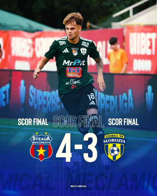 Echipa de fotbal Unirea Slobozia a fost învinsă de formația de ligă secundă Steaua București cu scorul de 4-3 (3-1), vineri, într-un meci amical disputat pe Stadionul Steaua. Golurile steliștilor au fost marcate de Bogdan Chipirliu, Gualda, Adrian Popa și Robert Popescu. Pentru echipa ialomițeană au înscris Guy Dahan, Denis Ian