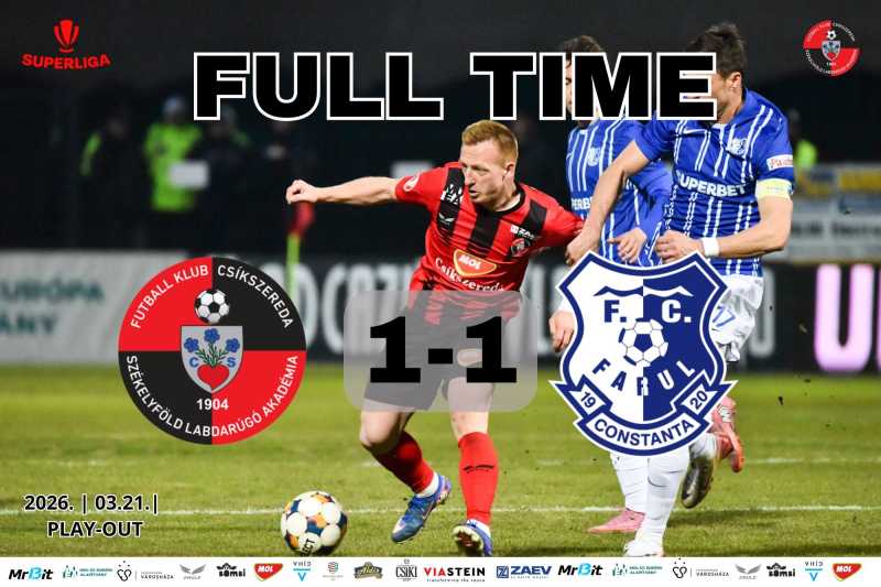 FK Csikszereda și Farul Constanța au terminat la egalitate, 1-1 (0-0), sâmbătă seara, la Miercurea Ciuc, într-o partidă din etapa a doua a fazei play-out a Superligii de fotbal. Ambele goluri s-au marcat pe final, după schimbări inspirate ale staffurilor tehnice. Iustin Doicaru (85) a deschis scorul pentru oaspeți, l