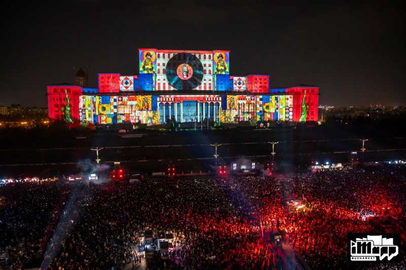 Proiecții video 2D și 3D pe fațada Palatului Parlamentului - ''iMapp Bucharest - Winners League''