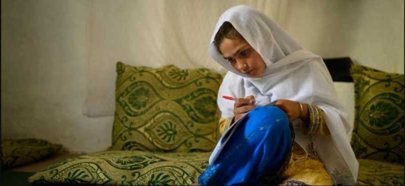 O imagine care înfățișează o fată afgană studiind, desemnată Fotografia Anului 2025 de UNICEF