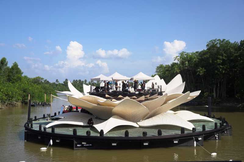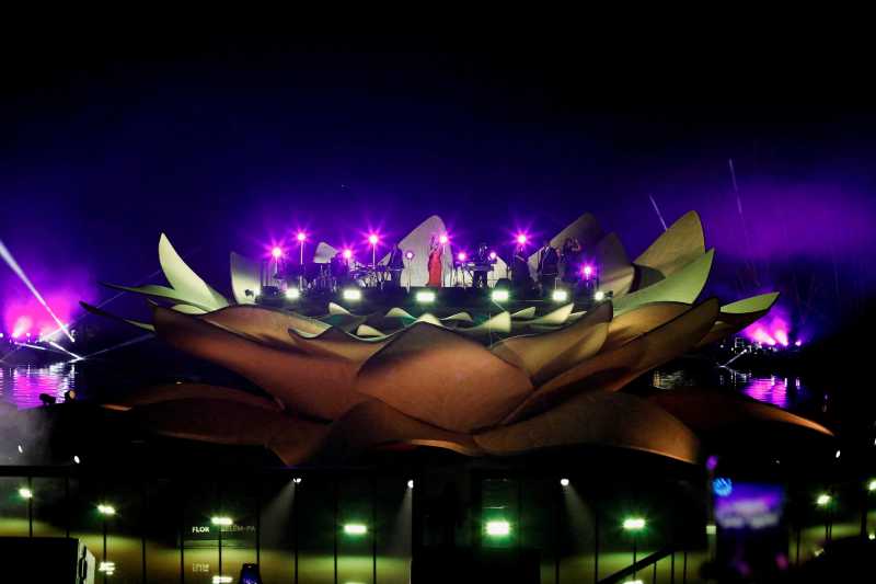 Miercuri seară, timp de o jumătate de oră, artista americană, îmbrăcată într-o rochie roșie strălucitoare, a interpretat unele dintre hiturile sale pe o scenă ce avea forma unui nufăr uriaș și care plutea pe râul Guama, în timp ce fanii au urmărit concertul dintr-un alt loc.