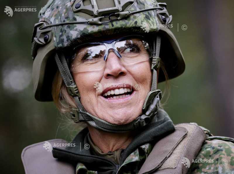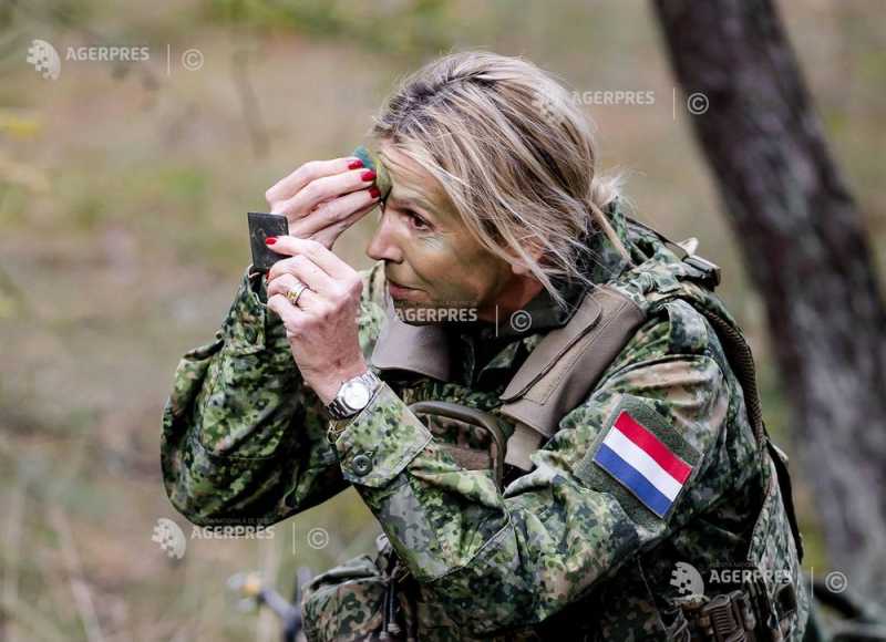 Regina Țărilor de Jos s-a vopsit pe față în culori de război și a participat la antrenamente militare