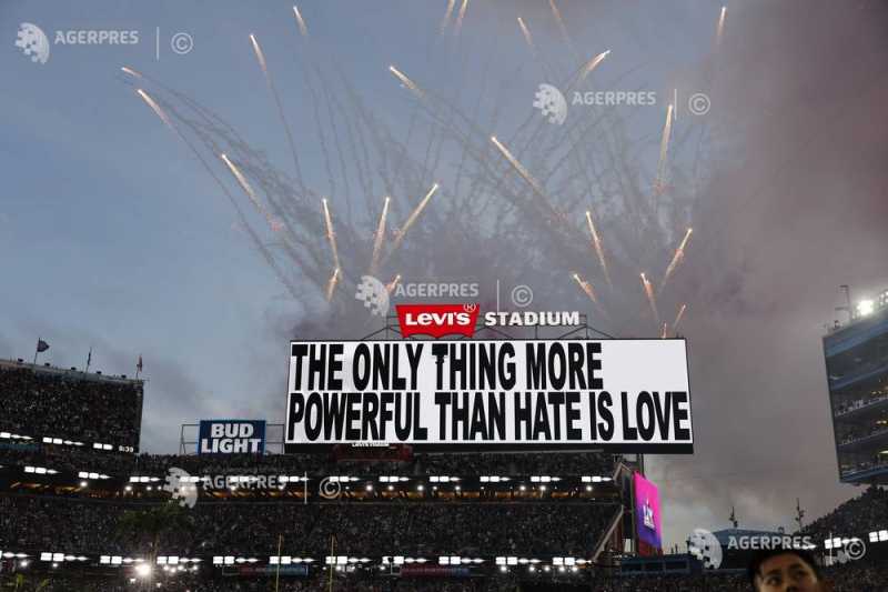 Bad Bunny a fost însoțit pe scenă de super-vedeta pop Lady Gaga la spectacol vibrant din pauza Super Bowl, susținut aproape în întregime în limba spaniolă, relatează luni DPA/PA Media.