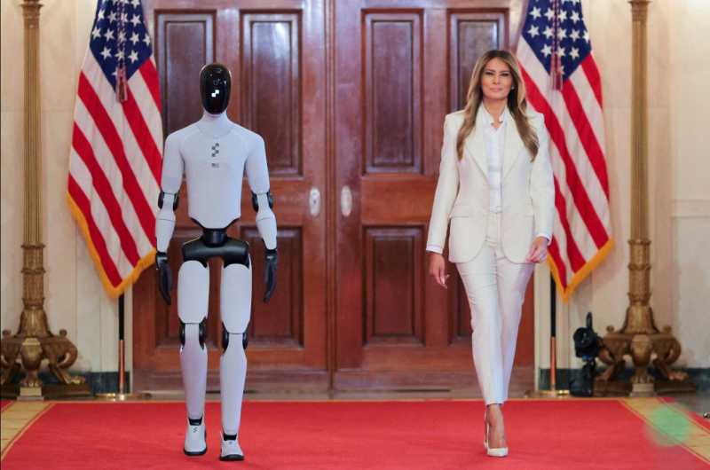 Prima doamnă a Statelor Unite, Melania Trump, a fost însoțită miercuri de un invitat surpriză la un eveniment organizat la Casa Albă: un robot umanoid capabil să meargă singur și să vorbească, informează AFP. În locul soțului său (președintele Donald Trump - n.red.), androidul 'Figure 3' a fost prezent alături de Melania Trump pe covorul ro