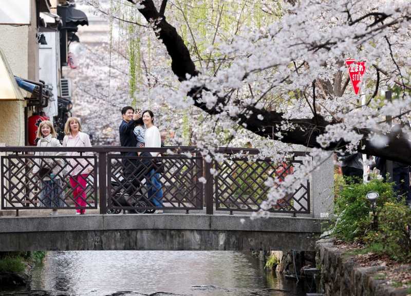 În fosta capitală imperială Kyoto, autoritățile locale au declarat că luni reprezintă ziua de înflorire maximă a cireșilor după ce au examinat un arbore de referință din incinta Castelului Nijo, un sit înscris în patrimoniul mondial UNESCO.