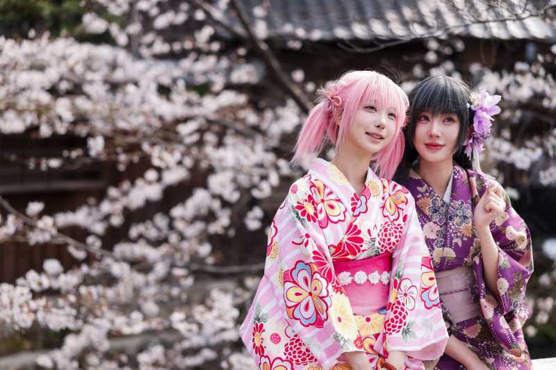 Olivia Martell-Groves, o turistă venită din Australia, s-a implicat pe deplin în această experiență de sezon, îmbrăcând un kimono cu imprimeuri care reproduc aceste flori și admirând cireșii din fosta capitală imperială a Japoniei.